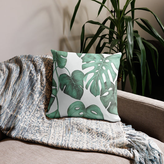 Green Monstera Leaf Pillow