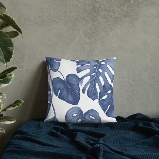 Blue Monstera Leaf Pillow