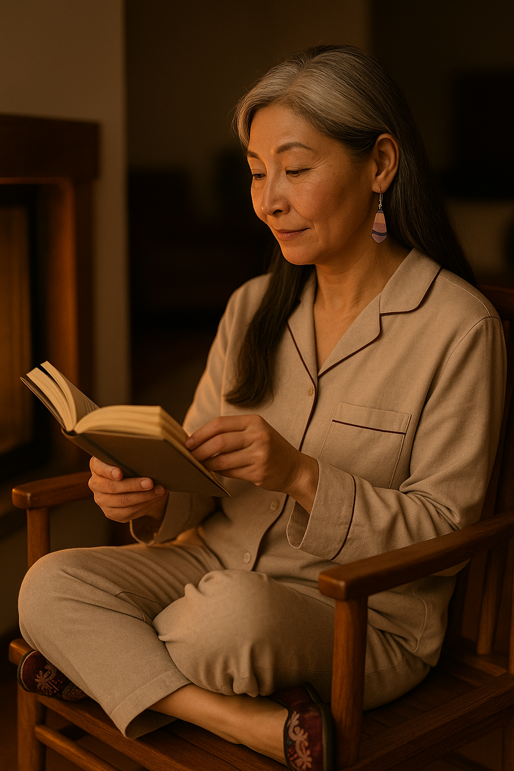 Design: Wing-inspired Peach, lavender, plum, and soft orange with wave-pattern